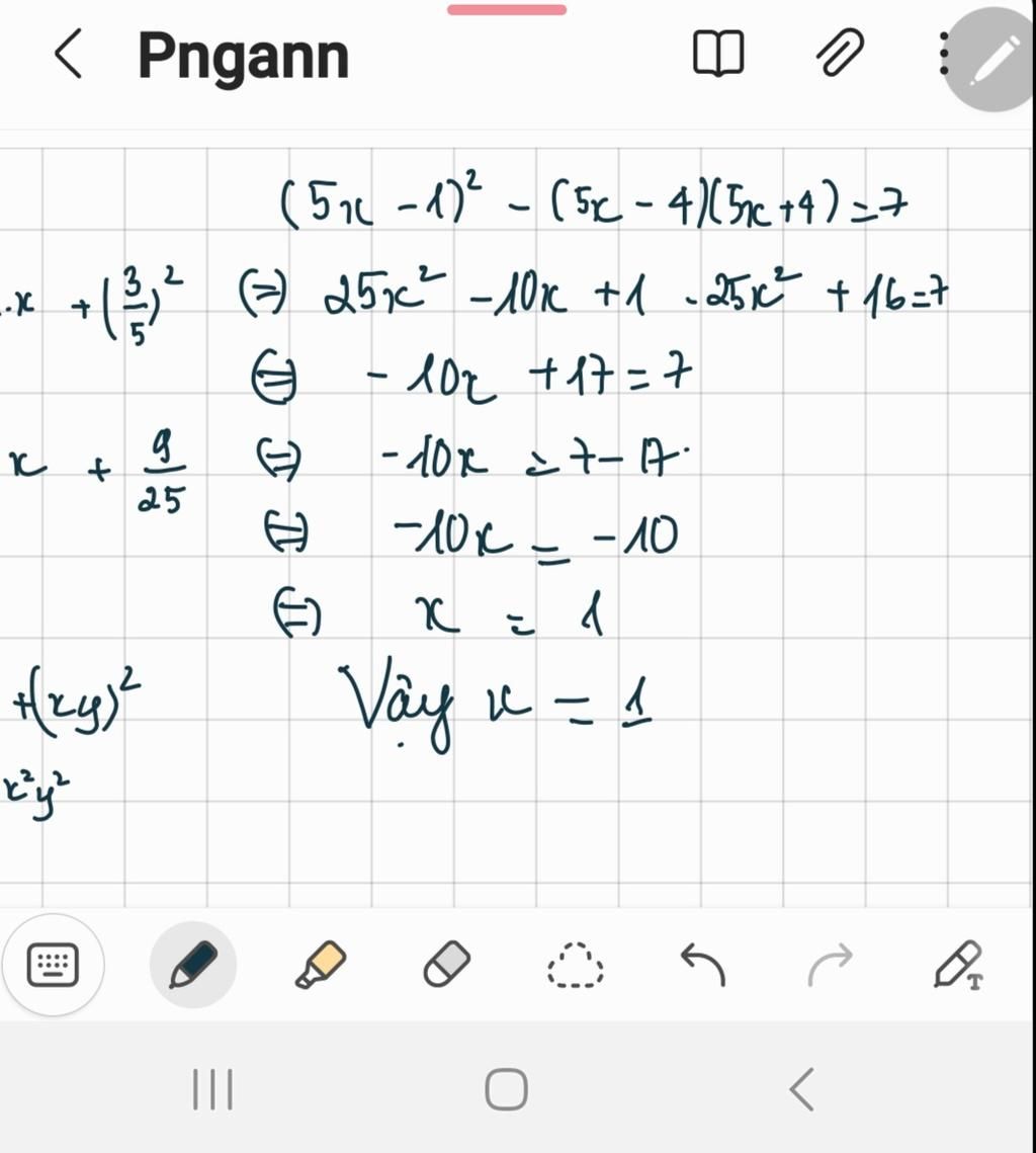 `( 5x - 1 )^2 - ( 5x - 4 )(5x + 4 ) = 7`