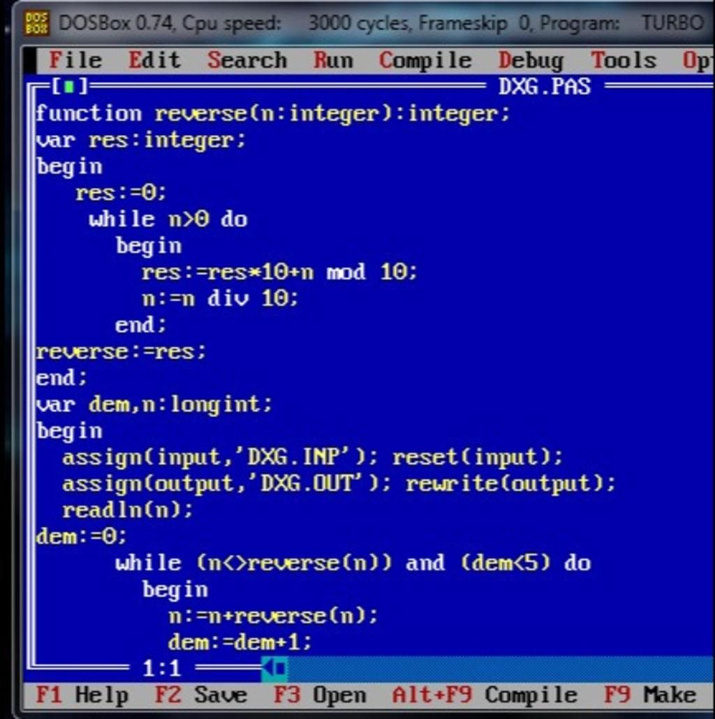 Kết quả:Ghi ra DXG.OUT gồm một dòng chứa số đối xứng gương xây dựng từ N sau không quá 5 bước.Nếu sau 5 bước mà chưa gặp số đối xứng gương thì ghi"Khong"
