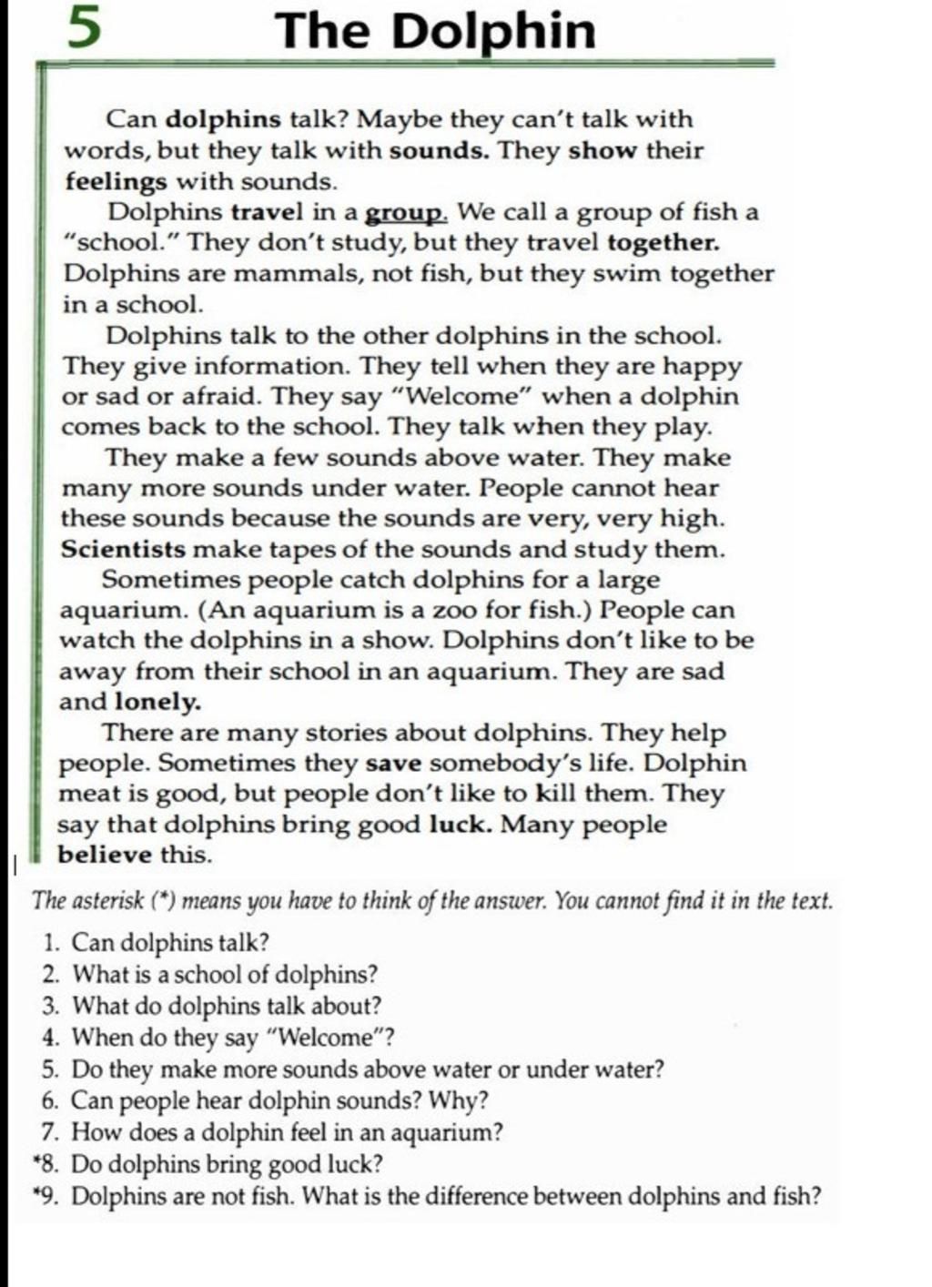 4. They say "welcome" when dolphin comes back to the school (sentence 3 P3)