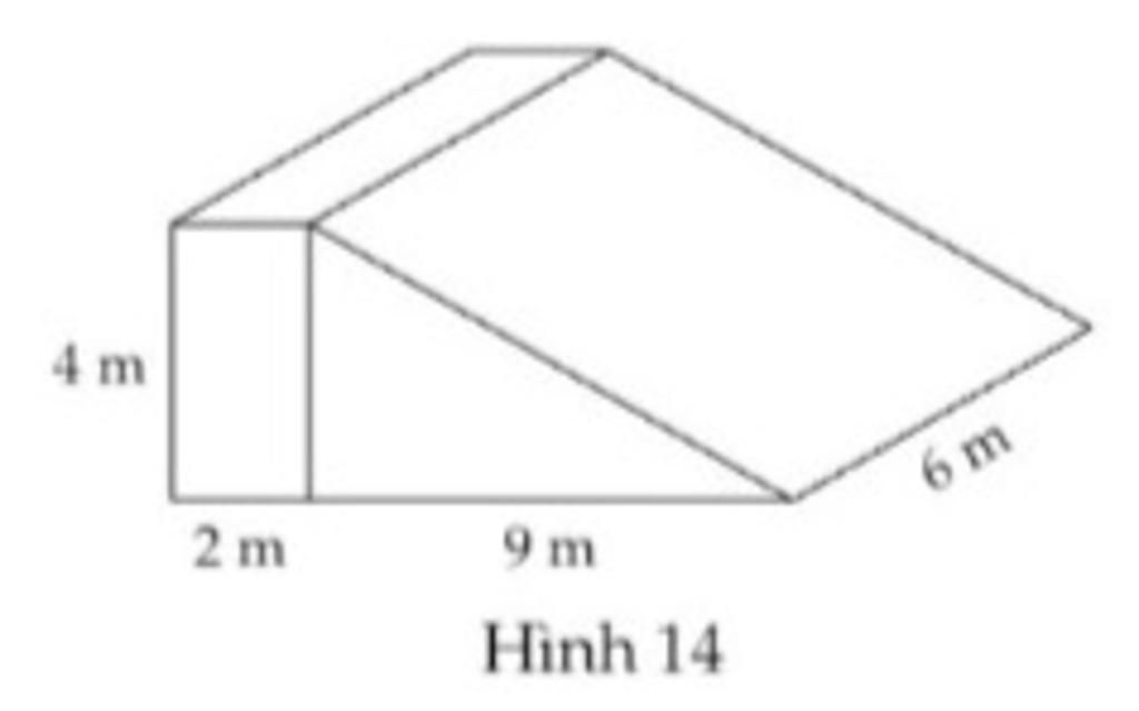 Ta chia khối bê tông thành hai phần: Hình hộp chữ nhật và hình lăng trụ đứng tam giác.