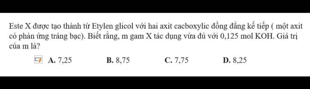 Ta có: $\rm n_X=0,5n_{KOH}=0,0625\ (mol)$