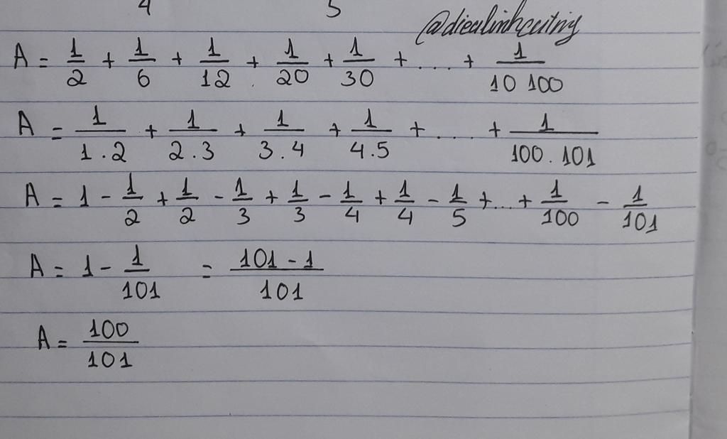 `A=1/(1.2)+1/(2.3)+1/(3.4)+....+1/(100.101)`