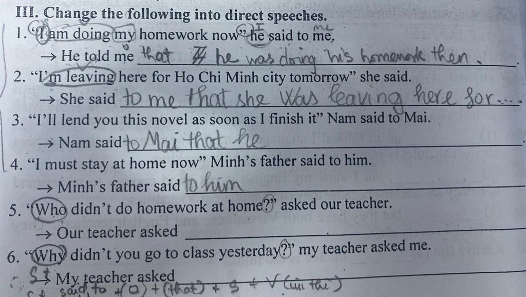 3. Nam said to Mai that he would lend her that novel as soon as he finished it.