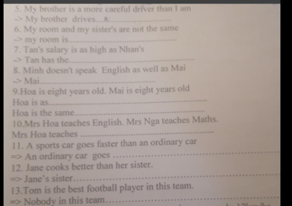 10. Mrs Hoa teaches different from Mrs Nga