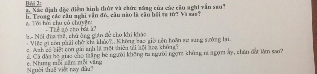 `e,` Đặc điểm hình thức là có dấu chấm hỏi ở cuối câu.