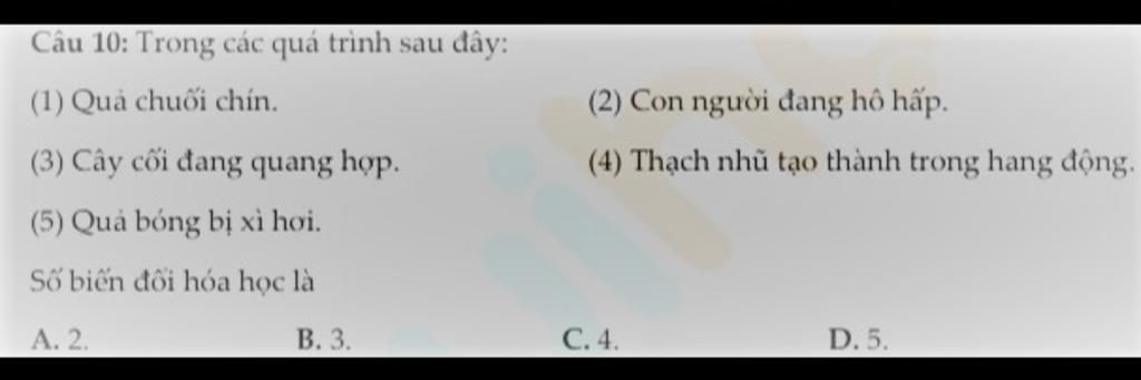 `(5)` Quả bóng bị xì hơi không có phản ứng xảy ra.