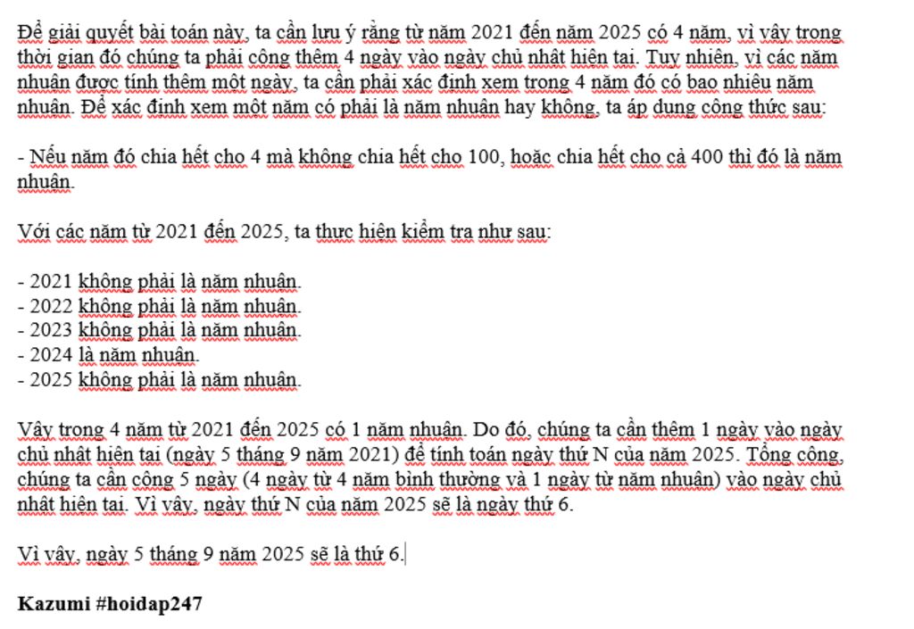 ngày 5 tháng 9 năm 2021 là chủ nhật Hỏi ngày 5 tháng 9 năm 2025 là thứ mấy
