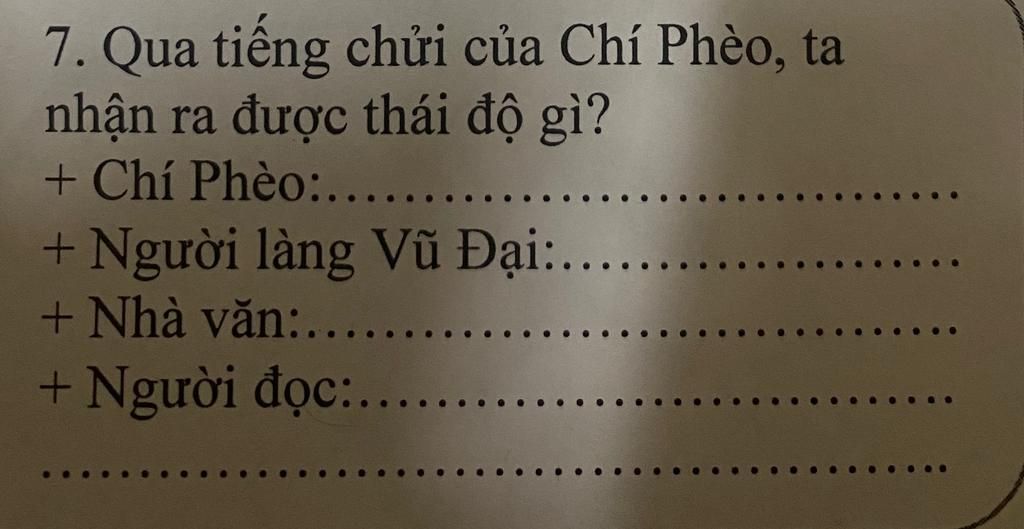 `7,` Qua tiếng chửi của Chí Phèo, ta nhận ra được thái độ: