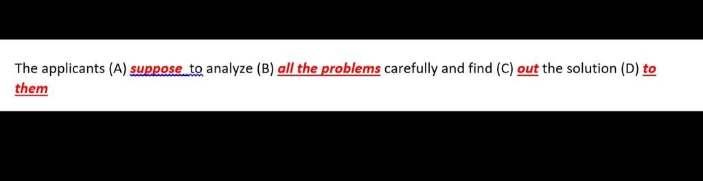 Dịch: các ứng viên phải phân tích tất cả các vấn đề một cách cẩn thận và tìm ra giải pháp cho chúng.