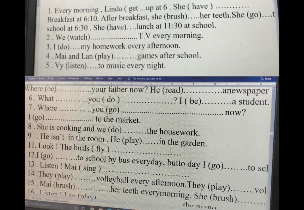 E ghi ra cho c 2 câu đi chị chia... vì c nghĩa 2 câu đó phía sau là HTtd nhé... nên k chia dc nếu k đầy đủ