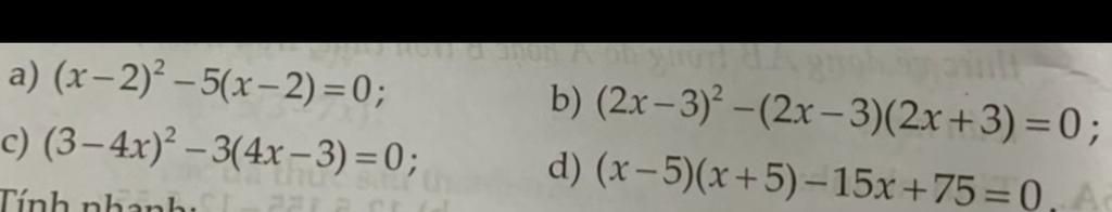 `b, ( 2x - 3 )^2 - ( 2x - 3 ) ( 2x + 3 ) = 0`