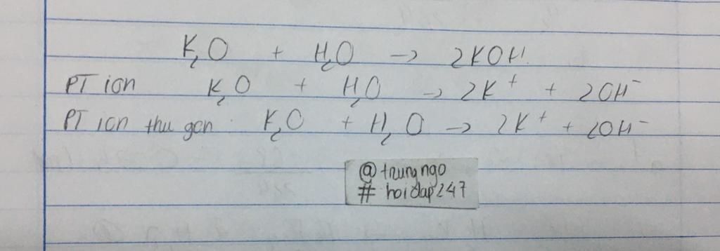 Phương trình ion đầy đủ: $K_2O+H_2O\to 2K^++2OH^-$