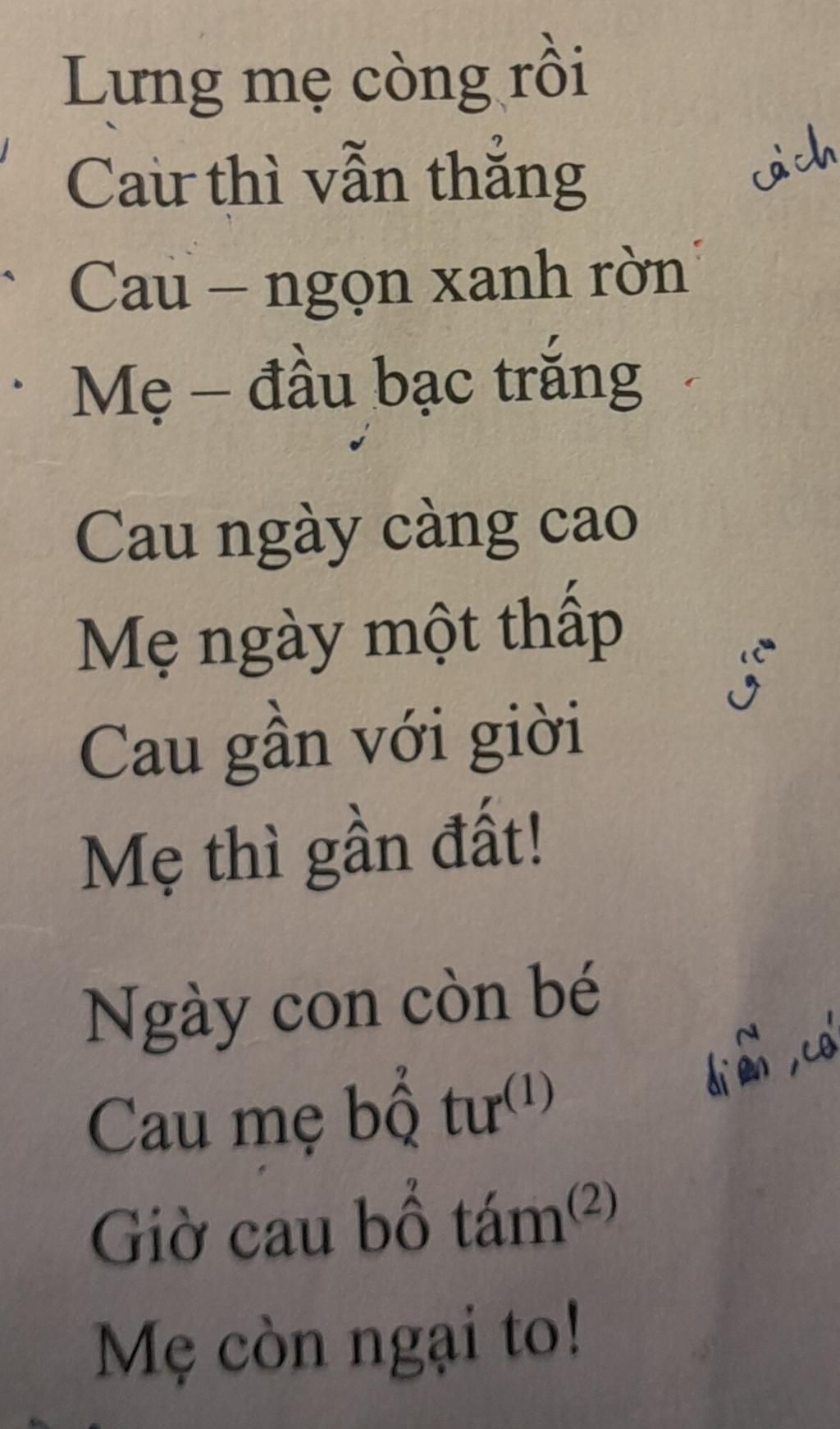 Lặp lại các từ: cau, mẹ, vẫn, ngày càng, gần