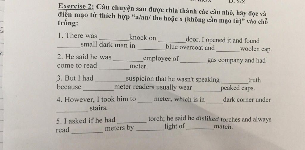 3. But I had a suspicion that he wasn't speaking the truth because x meter readers usually wear x peaked caps.