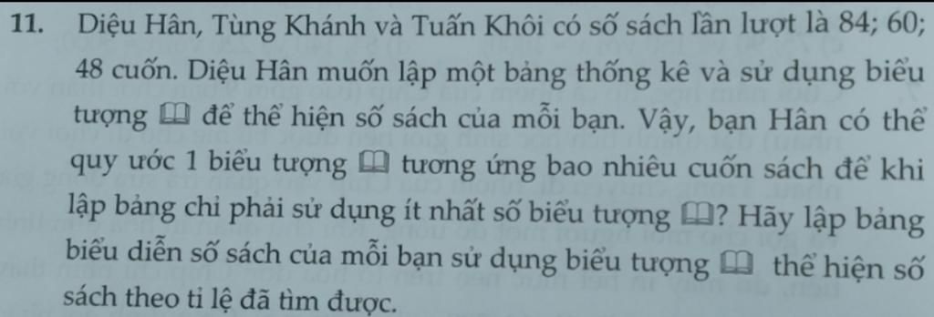 Ý bn là ghi tên của 3 đứa ra xong ghi cột 2 là mỗi đứa 12 cuốn xong có phải vẽ biểu tượng sách k ak hay là ghi 12 cuốn ak