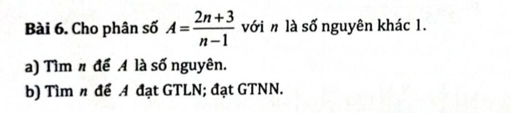 `+)` Để `A` đạt `GTN N` thì `5/(n-1)` nhỏ nhất
