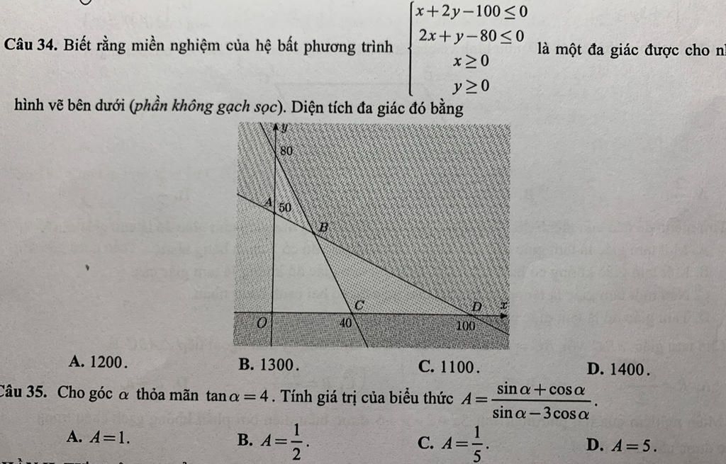 Vậy diện tích của góc đa giác được đánh dấu trong hình vẽ là 4000. Đáp án chính xác cho câu 34 là D. 1400.