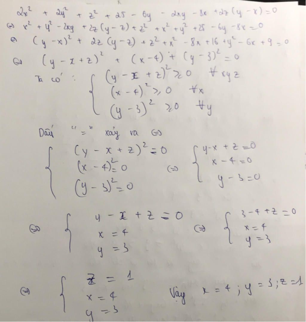 $2x^2 + 2y^2 + z^2 + 25 – 6y- 2xy – 8x + 2z (y – x) = 0 $