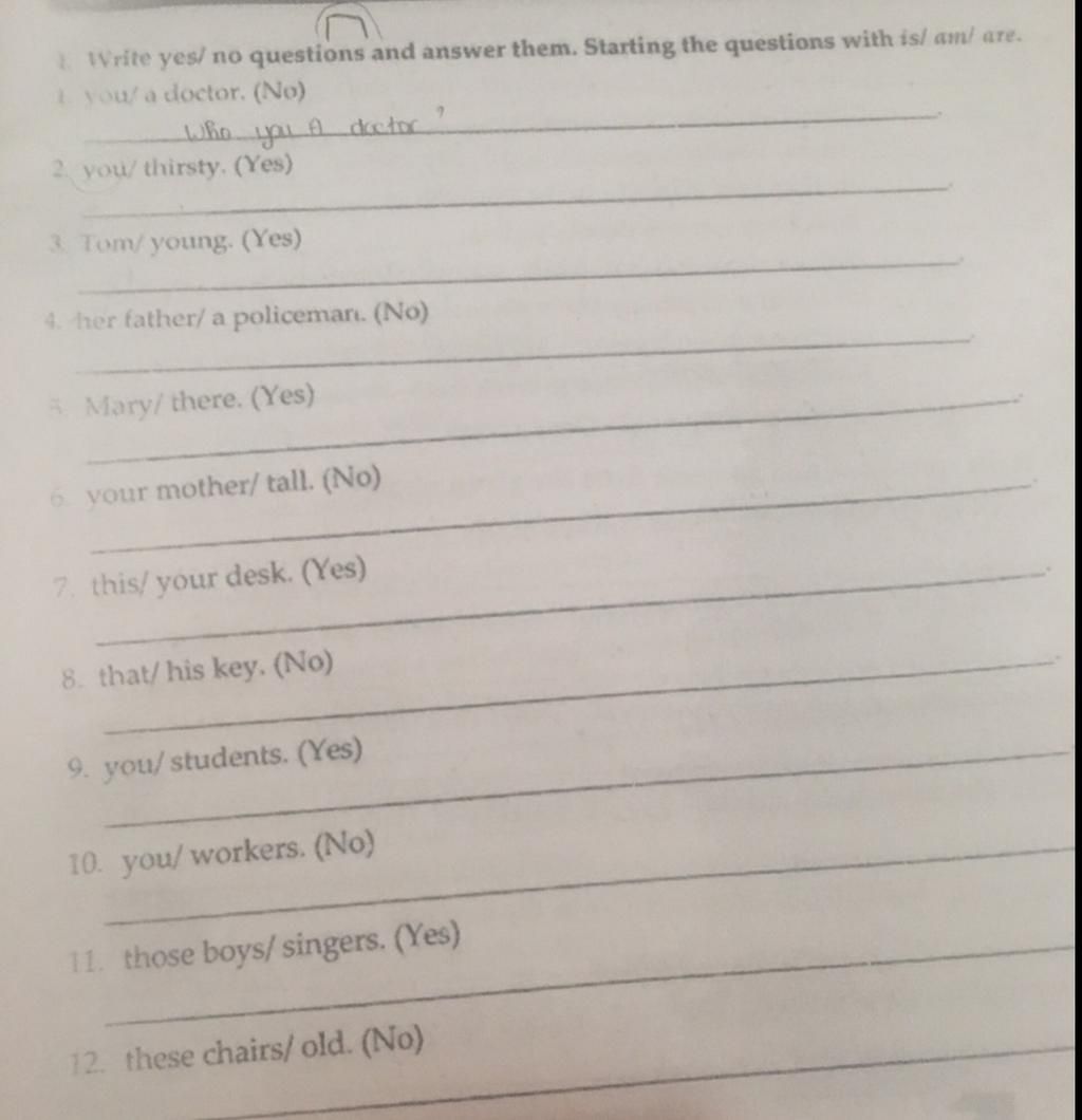 1. Write yes/ no questions and answer them. Starting the questions with is/ am/ are.