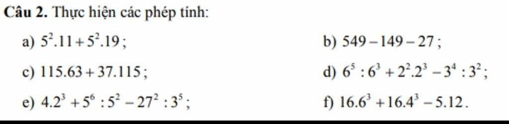 `4 . 2^3 + 5^6 : 5^2 - 27^2 : 3^5`