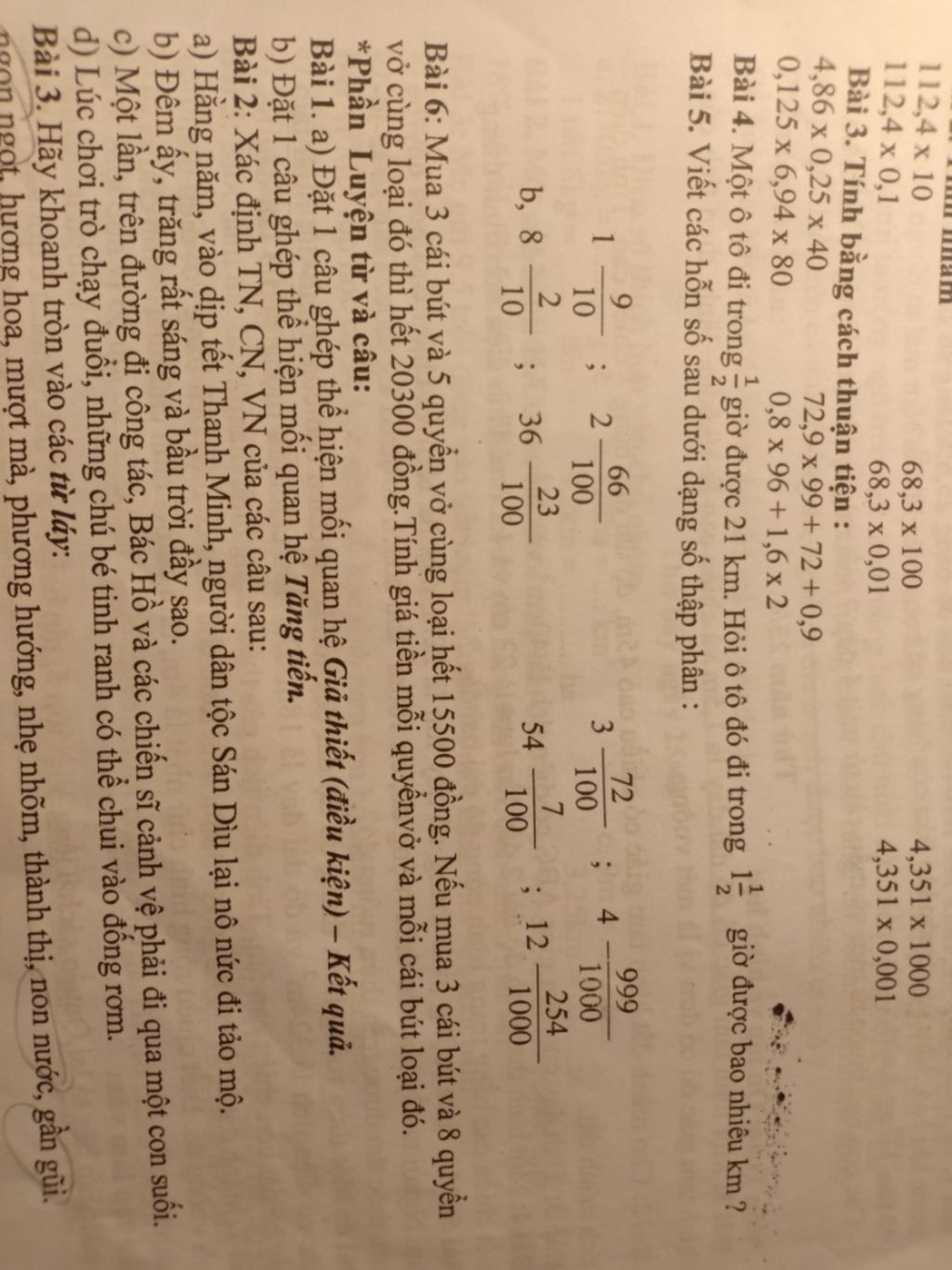 Giá tiền mua 5 quyển vở là`: `