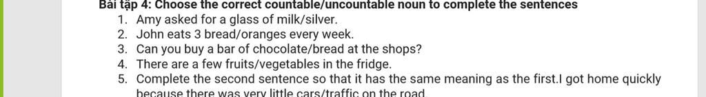 John eats `3` ... `->` từ cần điền là số nhiều. Oranges có s ở cuối `->` số nhiều `->` chọn oranges