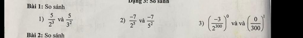 `3) (-3/2^300)^0` và `(0/300)^1`