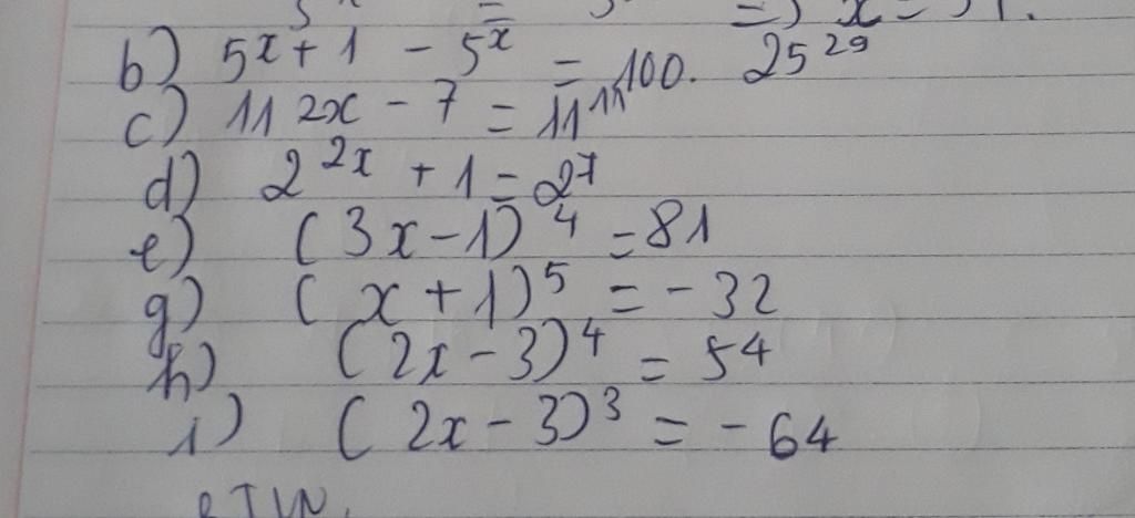 `b) 5^(x+1) - 5^(x) = 100 . 25^29`