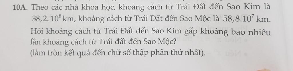 Khoảng cách từ Trái Đất đến Sao Kim gấp số lần khoảng cách từ Trái Đất đến Sao Mộc là: