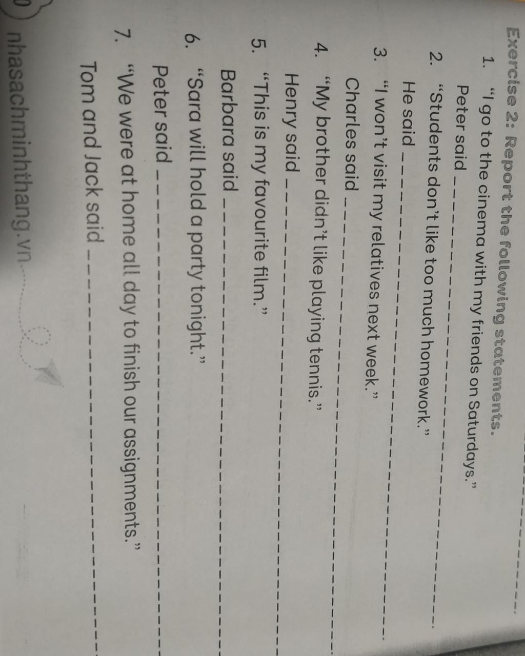 `7.` Tom and Jack said they had been at home all day to finish their assignments.