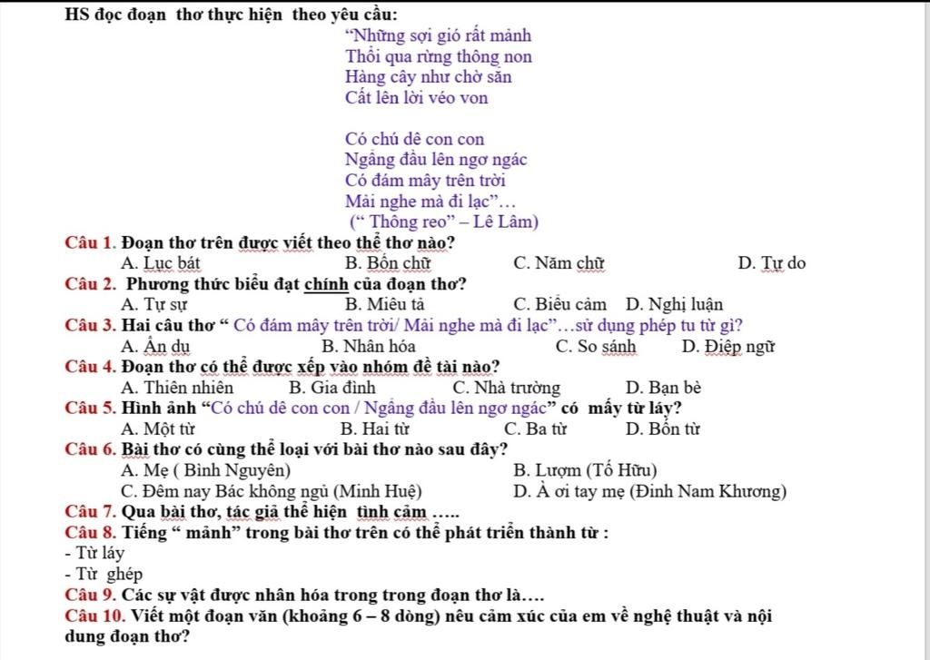 `->` Đoạn thơ trên được viết theo thể thơ : Năm chữ
