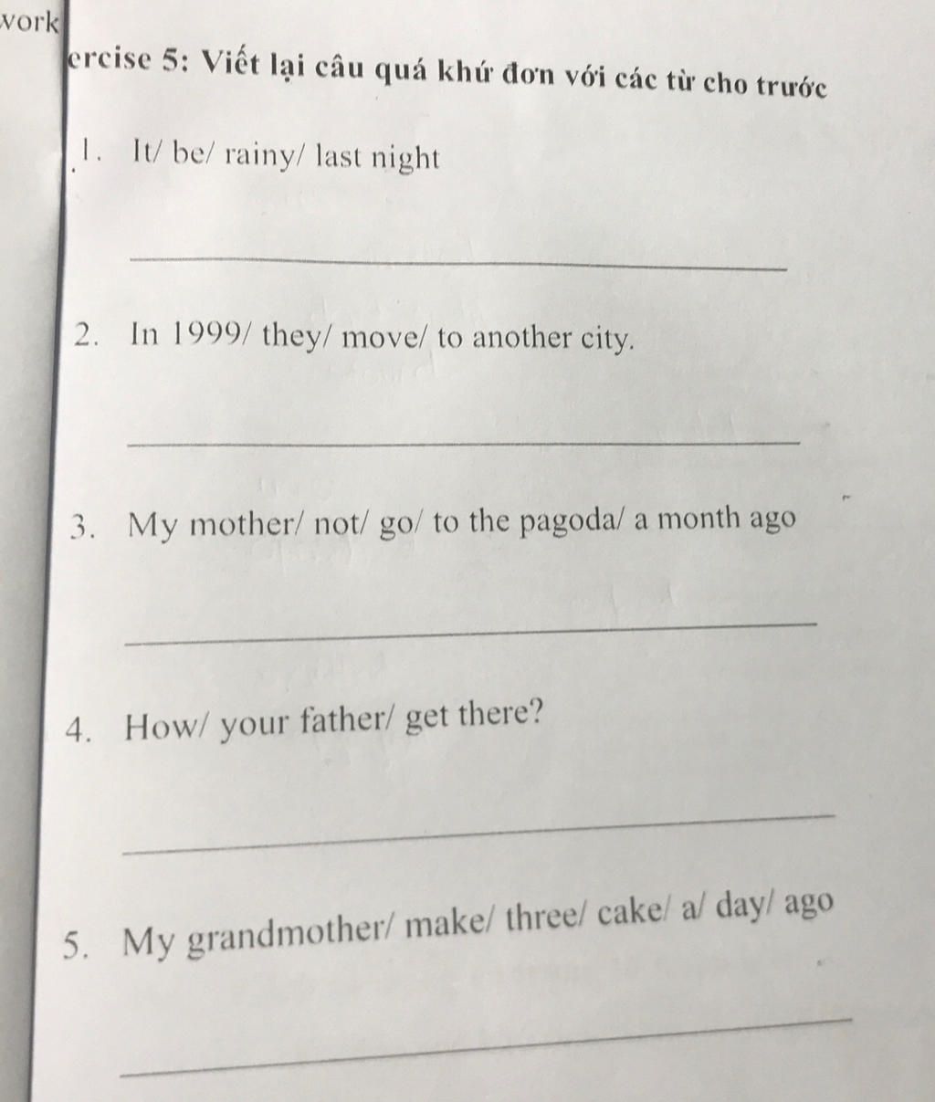 `3.` My mother didn't go to the pagoda a month ago.