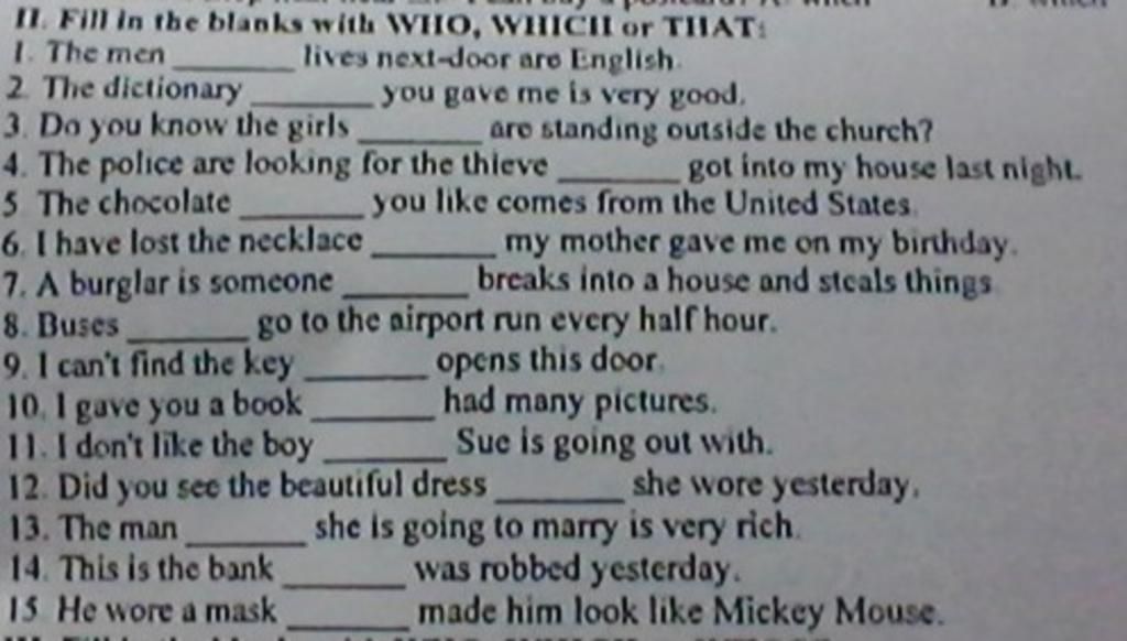 11. I don’t like the boy whom Sue is going out with.