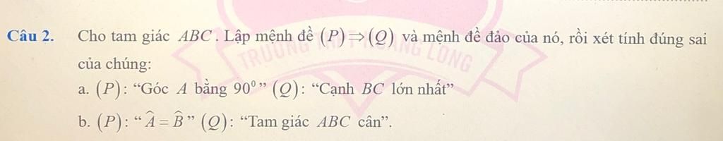 a. (P):“Góc 4 bằng 900” (Q): “Cạnh BC lớn nhất”