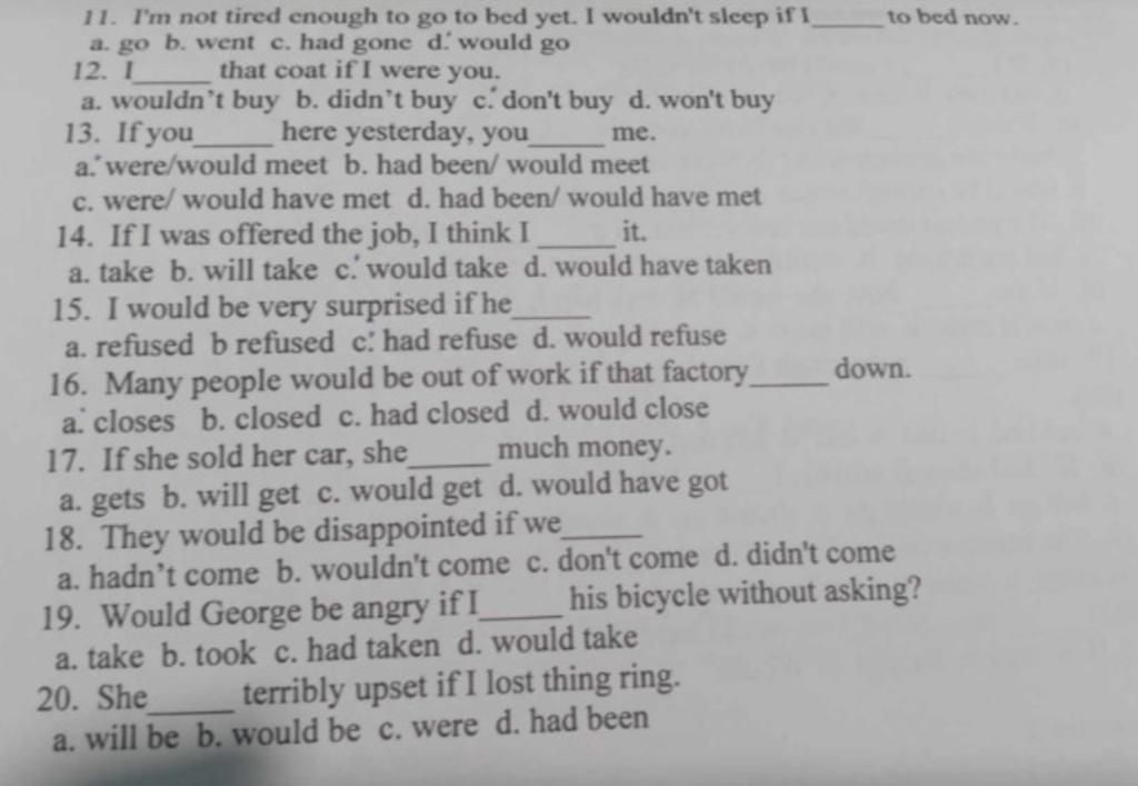`+` Mệnh đề chính: S `+` would/could `+` V-inf