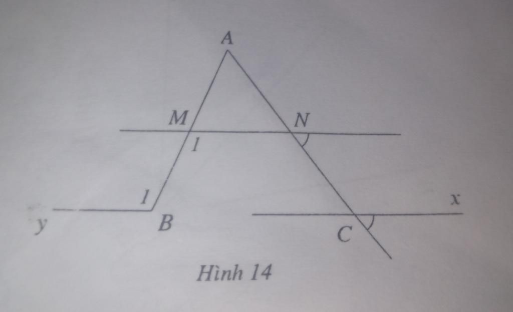 `b)`(Do mình không biết hai góc kia tên gì nên mình gọi là `hat{N}` và `hat{C}`)