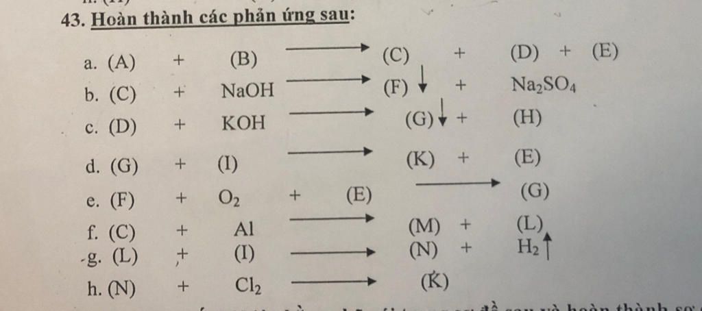 `g)\ Fe+2HCl->FeCl_2+H_2`
