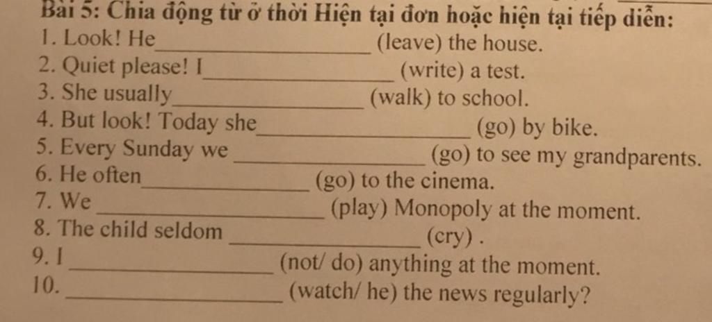 `->` Thì HTTD | Dấu hiệu : Quiet please!