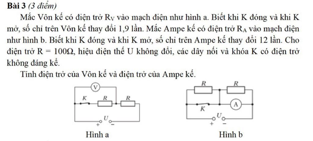 mở, số chỉ trên Vôn kế thay đổi 1,9 lần. Mắc Ampe kế có điện trở Ra vào mạch điện