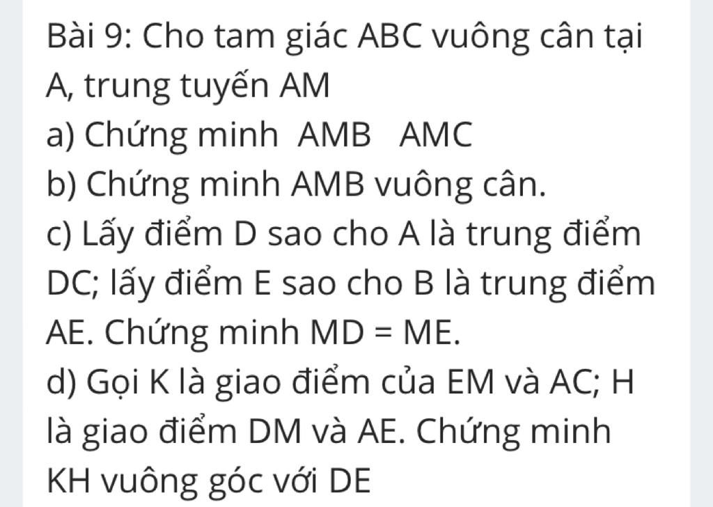Do đó MD=ME( 2 cạnh tương ứng)