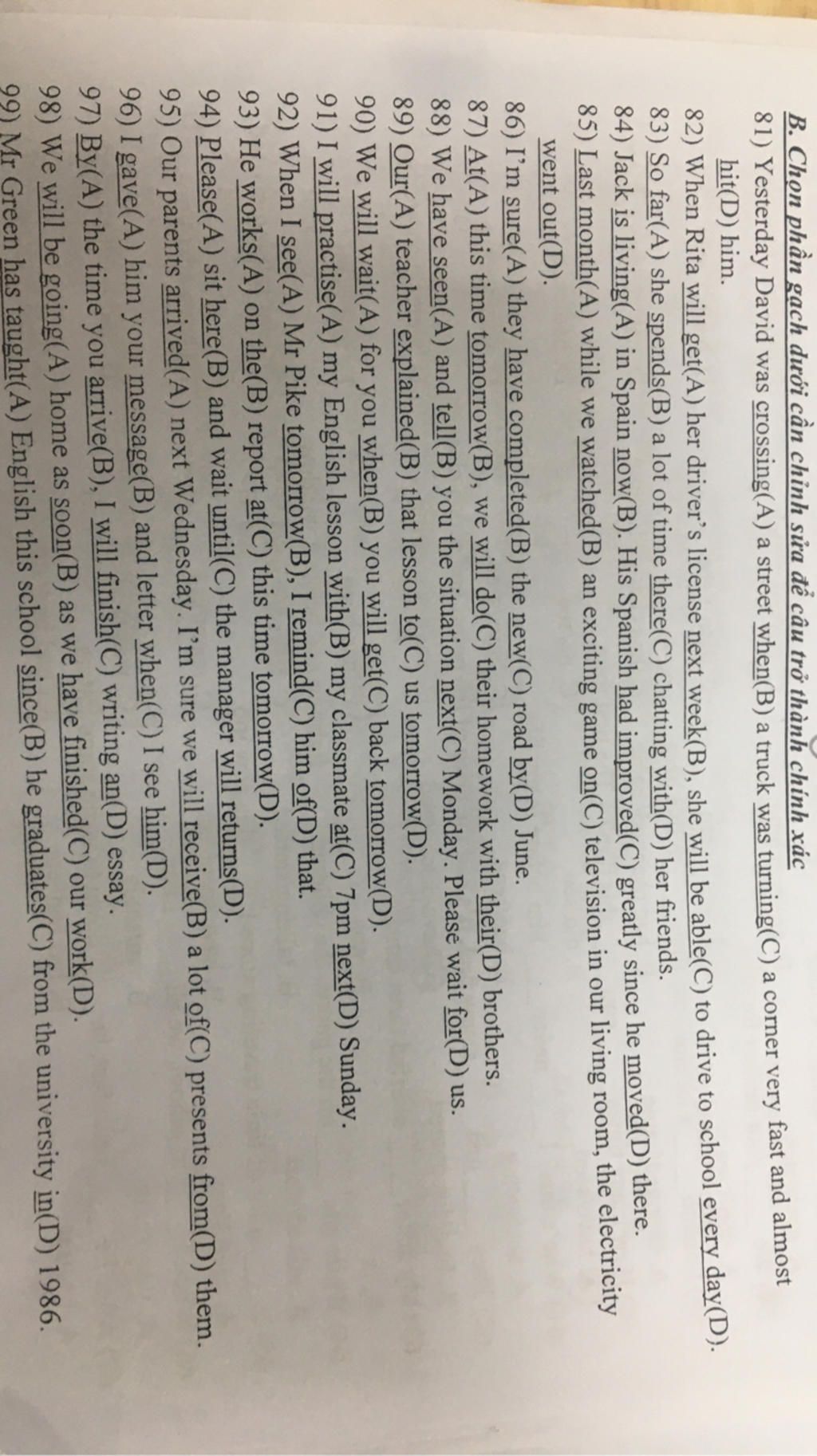 B. Chọn phần gạch dưới cần chỉnh sửa để câu trở thành chính xác