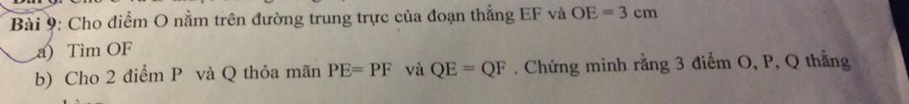 a)Vì O nằm trên đtường trung trực của đoạn thẳng EF