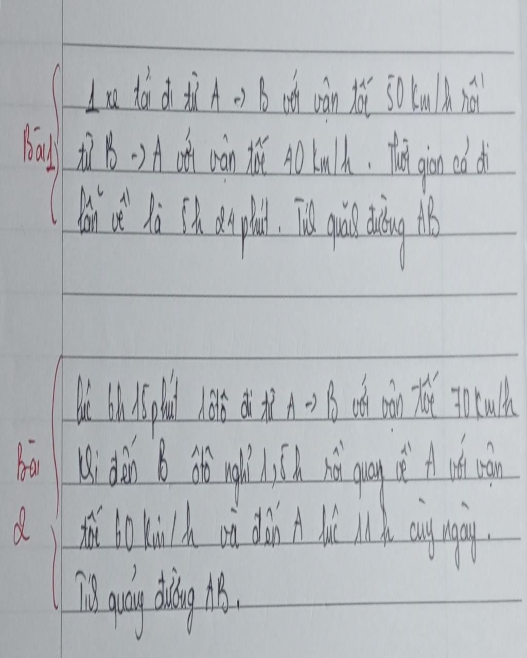 Vì xe tải lúc đi có vận tốc $50km/h$ nên thời gian khi xe đi từ `A →B` là :`x/{50}`(giờ)