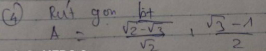 `A=(sqrt{2}. sqrt{2-sqrt{3}})/(sqrt{2}. sqrt{2})+(sqrt{3}-1)/2`