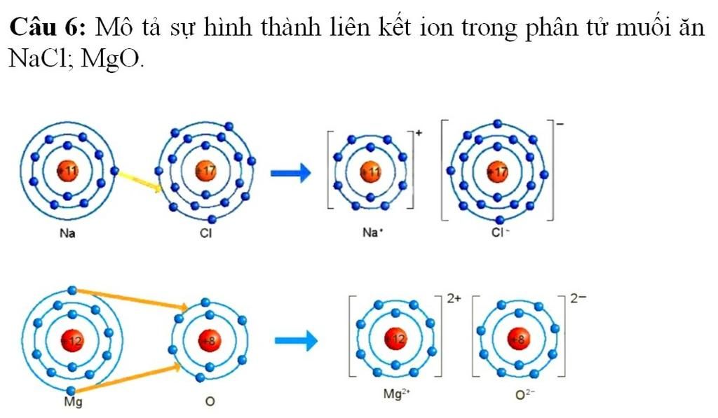 - Khi Mg kết hợp với O tạo thành phân tử magnesium oxide sẽ diễn ra sự cho và nhận electron giữa 2 nguyên tử như sau: