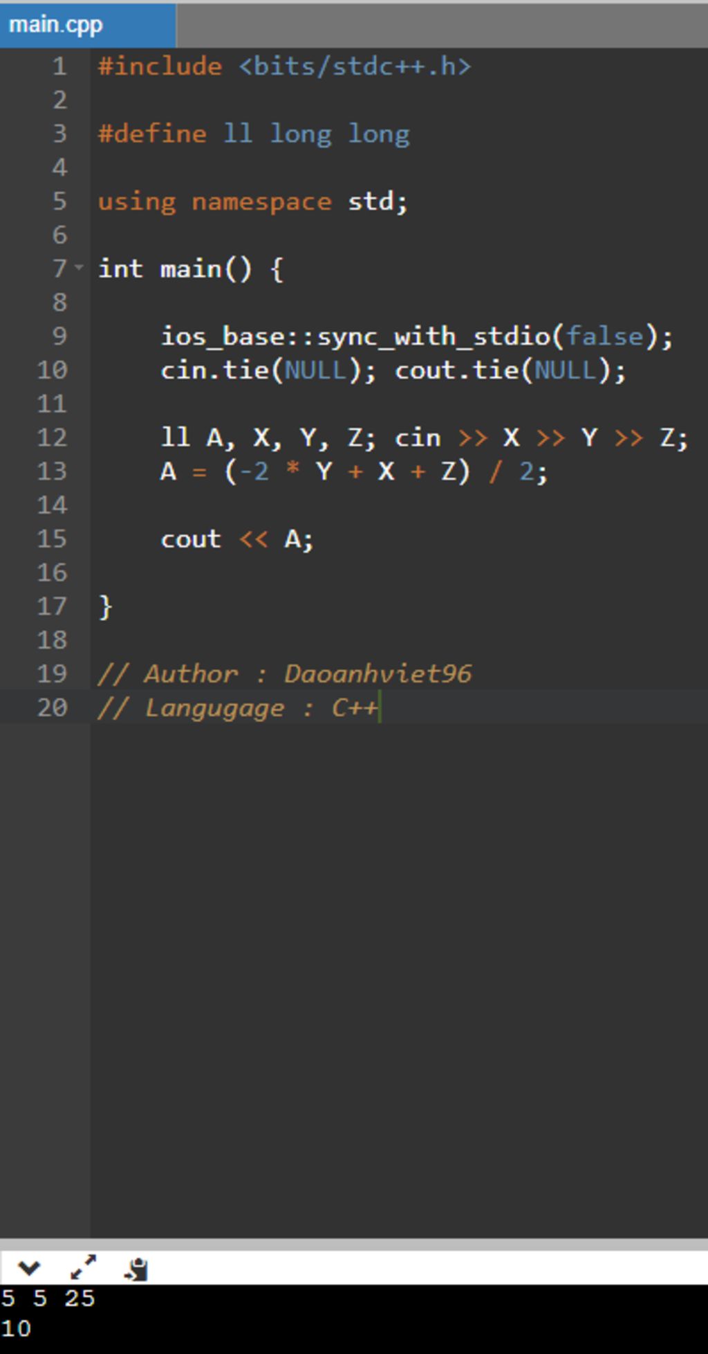 cout << A;