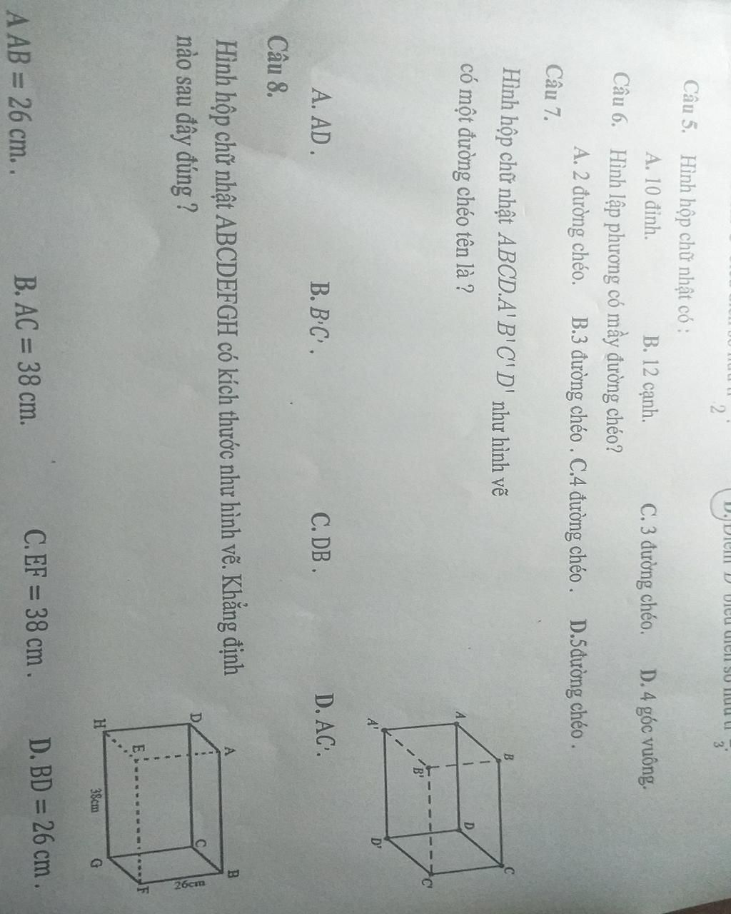 - Đường chéo của hình hộp chữ nhật ABCD.A'B'C'D' là AC'.