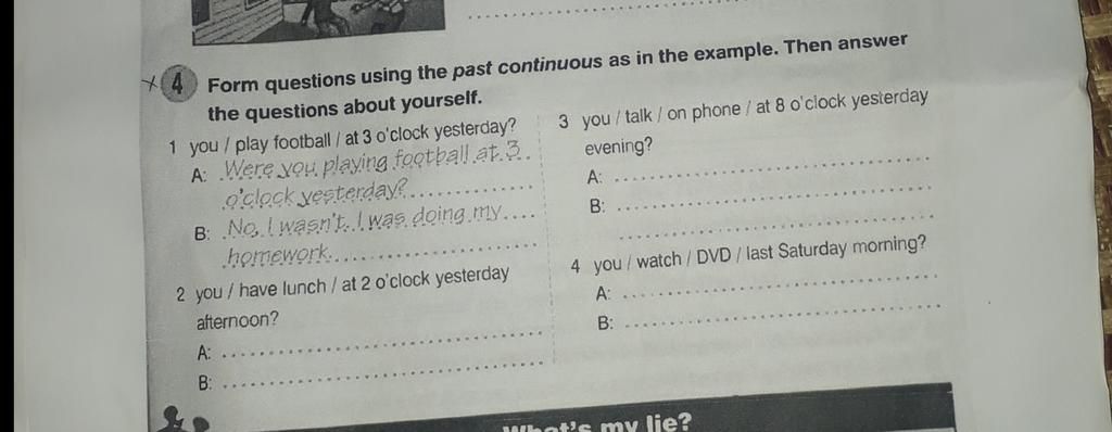 Form questions using the past continuous as in the example. Then answer the questions about yourself