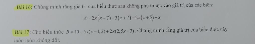 Vậy biểu thức không phụ thuộc vào giá trị của các biến: