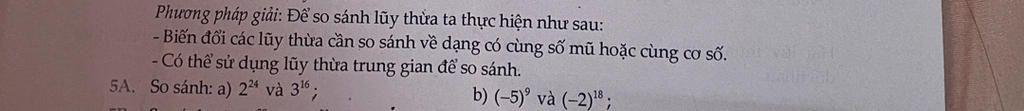 Vì: `8< 9` hay `8^8 < 9^8` nên `2^24<3^16`